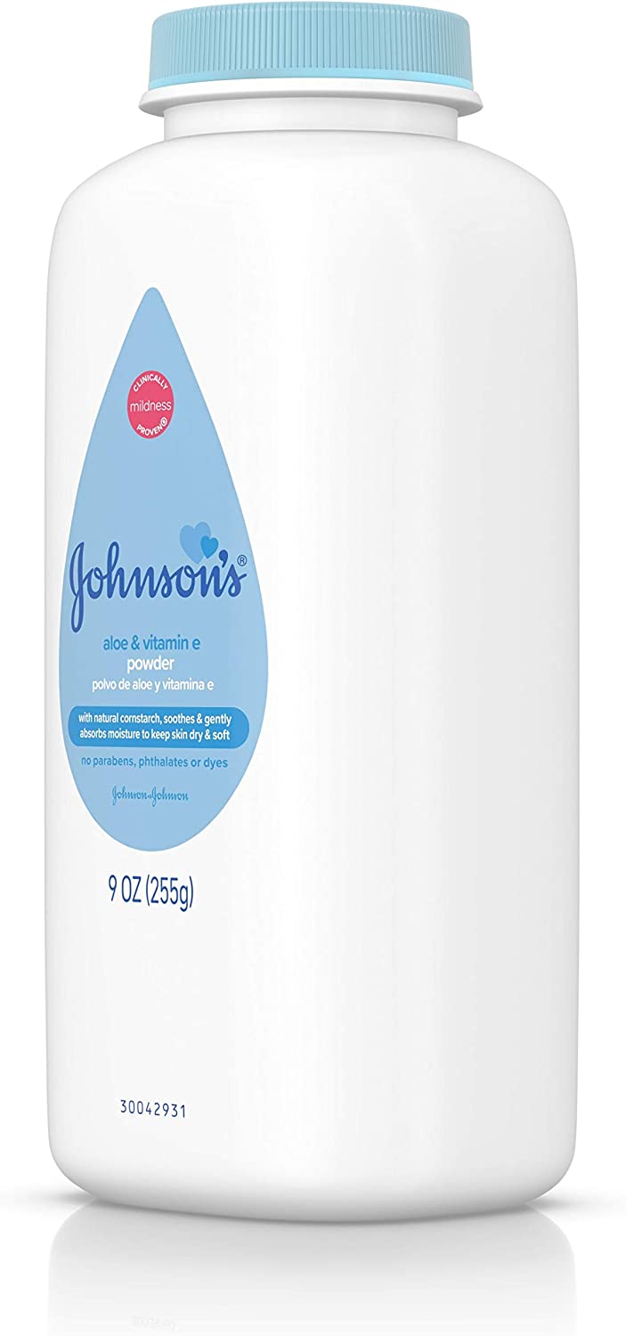 Johnsons Baby Powder with Naturally Derived Cornstarch Aloe Vera and Vitamin E, Hypoallergenic, 9 oz.