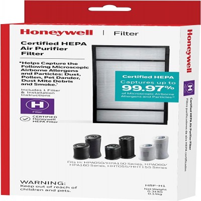 Honeywell HRF-H1 HEPA Air Cleaner Filter H, 1-Pack - For HPA050/150, HPA060 and HPA160 Series - Air Allergen Air Filter For wildfires/smoke, pollen, pet dander and dust