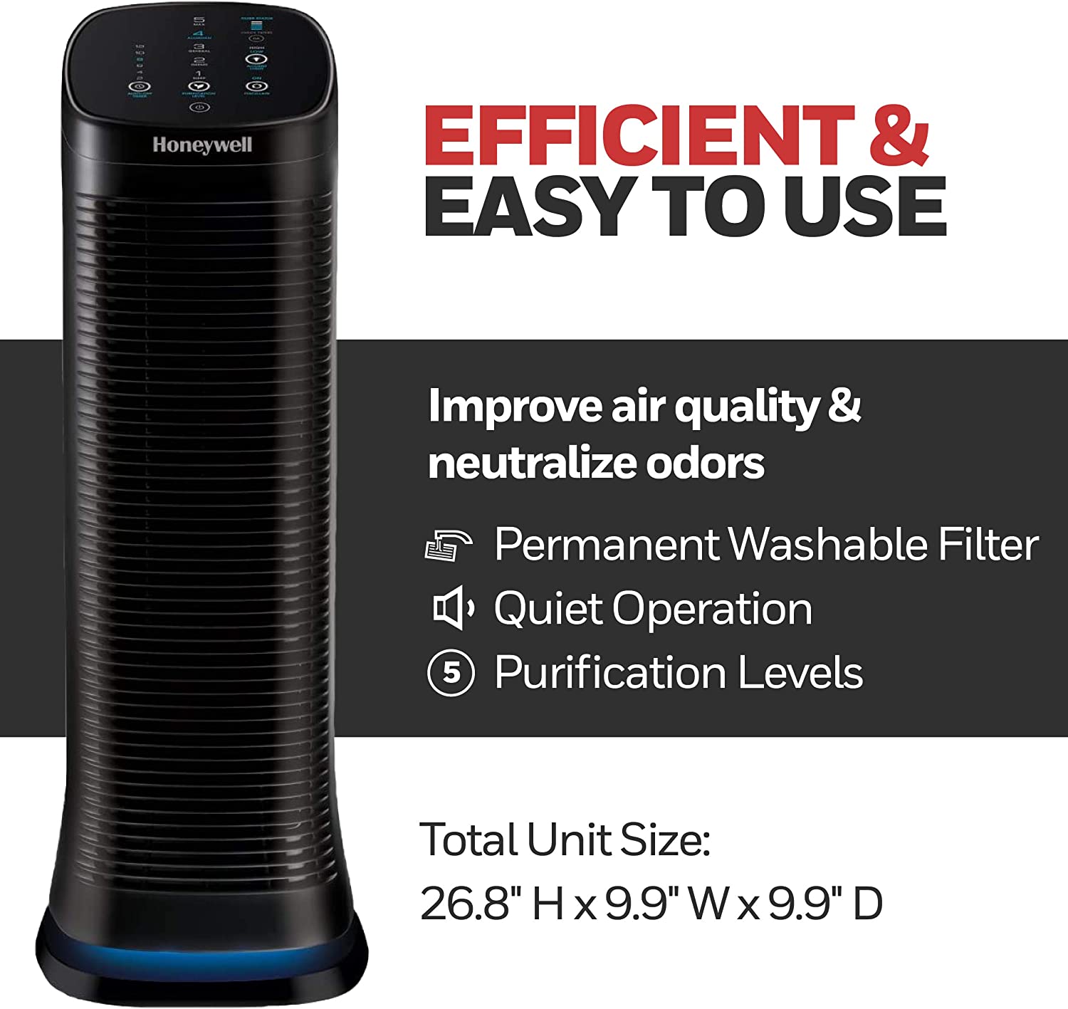 Honeywell HFD320 Air Genius 5 Air Purifier with Permanent Washable Filter Large Room (250 Sq. Ft.) Black