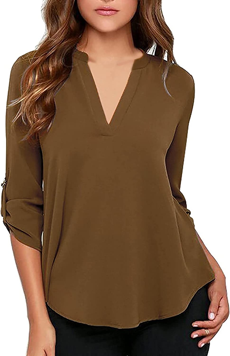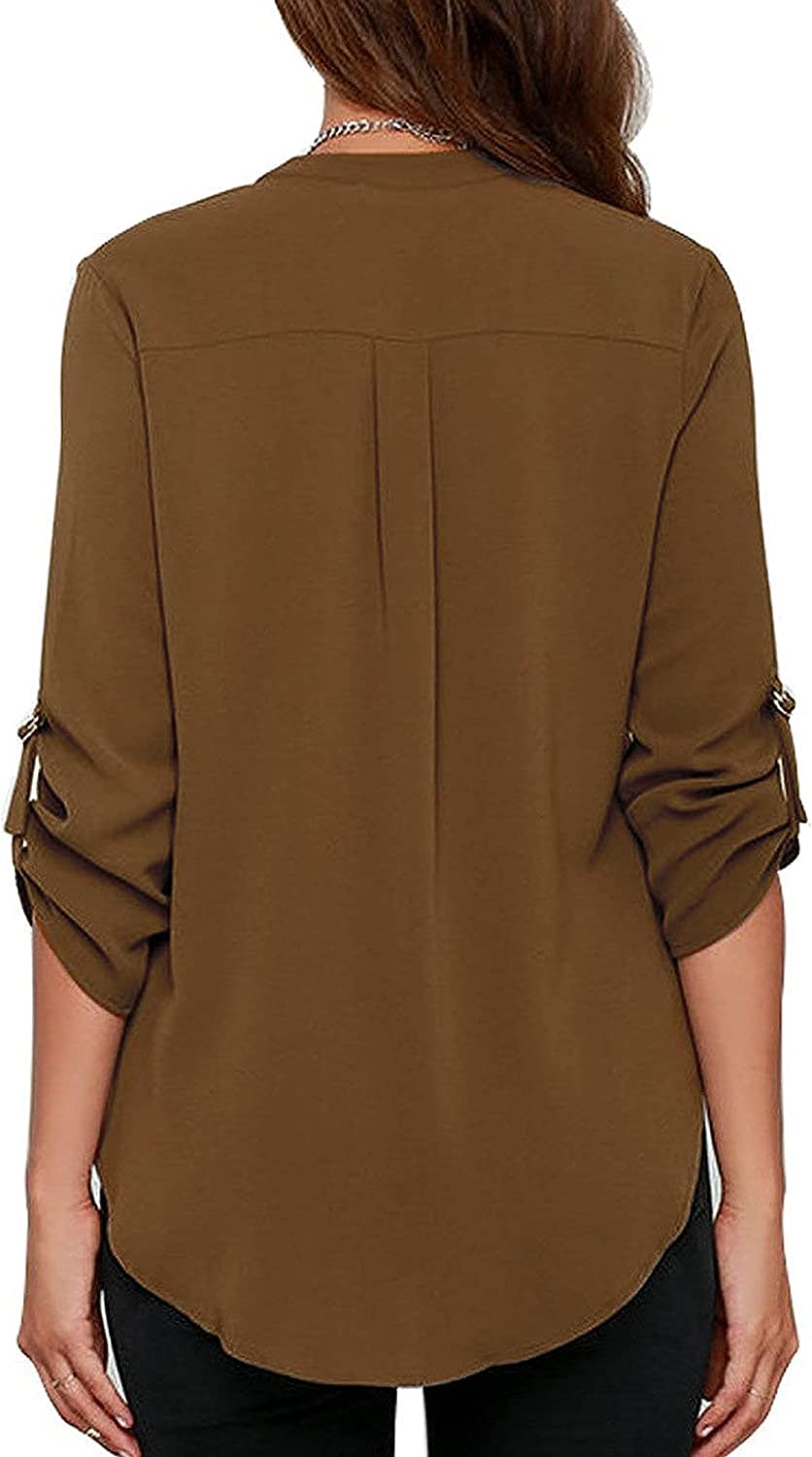 roswear Women's Business Casual V-Neck Flap Sleeve Work Shirt Blouse