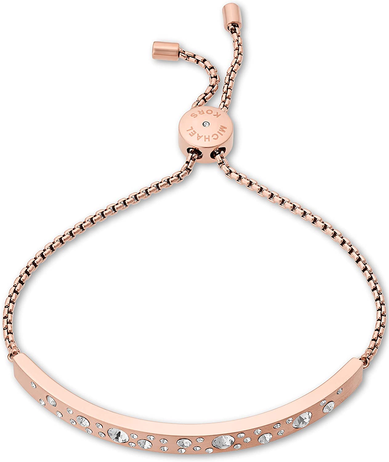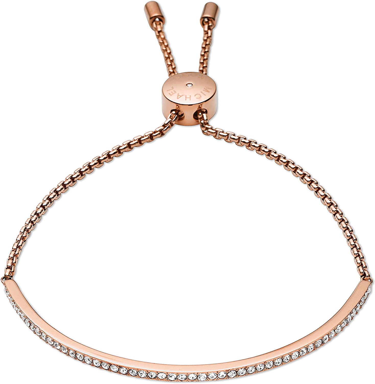 Michael Kors Women's Stainless Steel Rose Gold-Tone Slider Bracelet with Crystal Accents