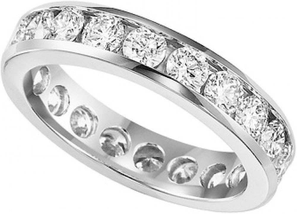 Madina Jewelry 3.00 Carat Women's Round Cut Diamond Eternity Wedding Band, Channel Set 14 Carat White Gold