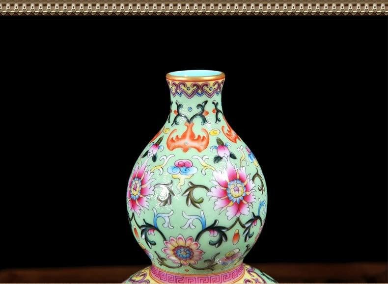 ZLXDP Chinese Style Antique Green Ceramic Vase Collection Jingdezhen Porcelain Gourd Decorative Vase