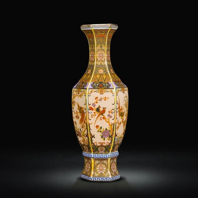ZSEDP Ceramic Antique Enamel Vase Living Room Home Decor Wine Cooler Frame Crafts Ornament