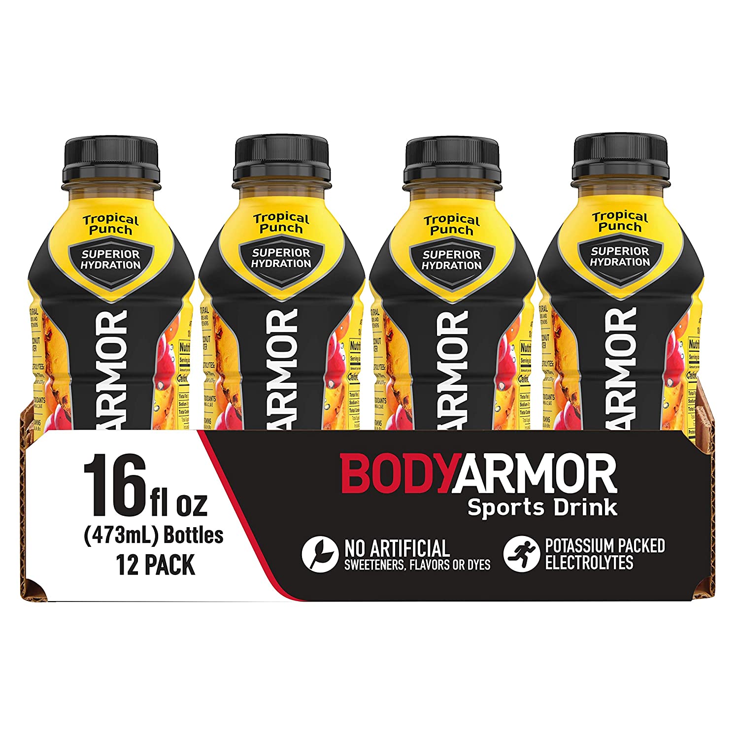 BODYARMOR Sports Drink Sports Drink, Tropical Punch, Naturally Flavored, Vitamin-Packed, Potassium-Rich Electrolytes, Great for Athletes, 16 Fluid Ounces (Pack of 12)