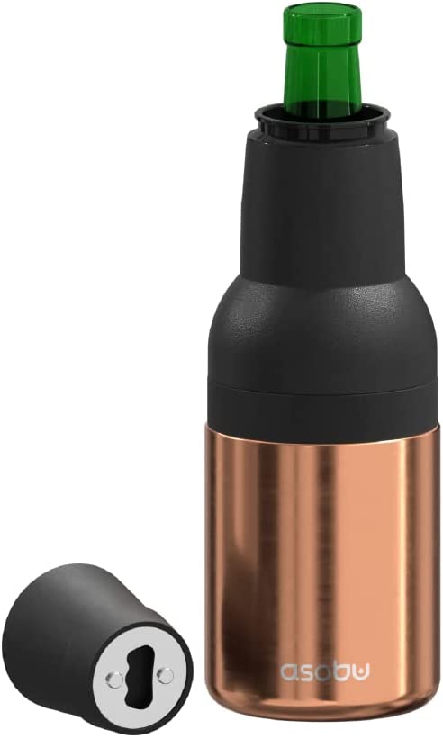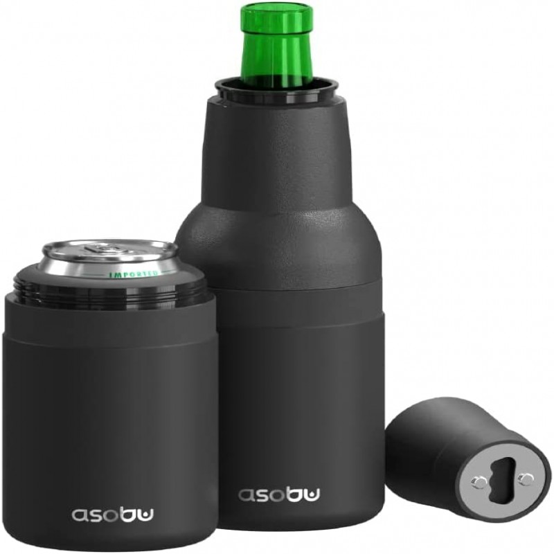 asobu Frosty Beer Holder 2 Go Vacuum Insulated Double Wall Stainless Steel Beer Can and Bottle Cooler with Beer Opener Eco-Friendly and BPA-Free (Black)