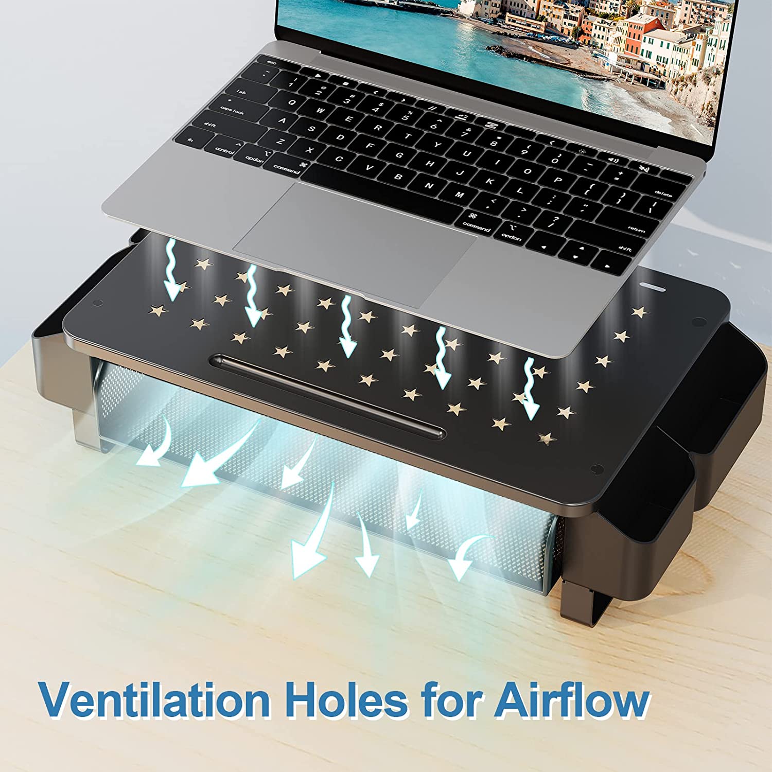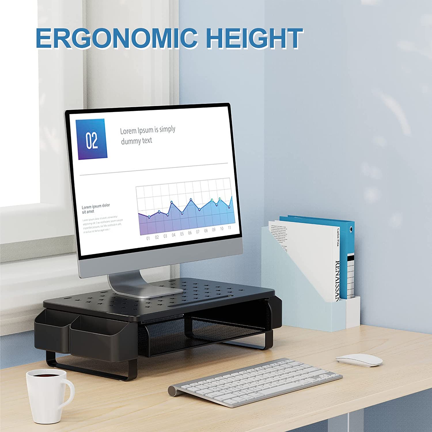 Zimilar Monitor Riser with Drawer, Monitor Riser with Side Storage Pocket for Desktop, Metal Monitor Stand for Laptops, PC Screens, Computers, Printers, iMacs, Home Office Stands