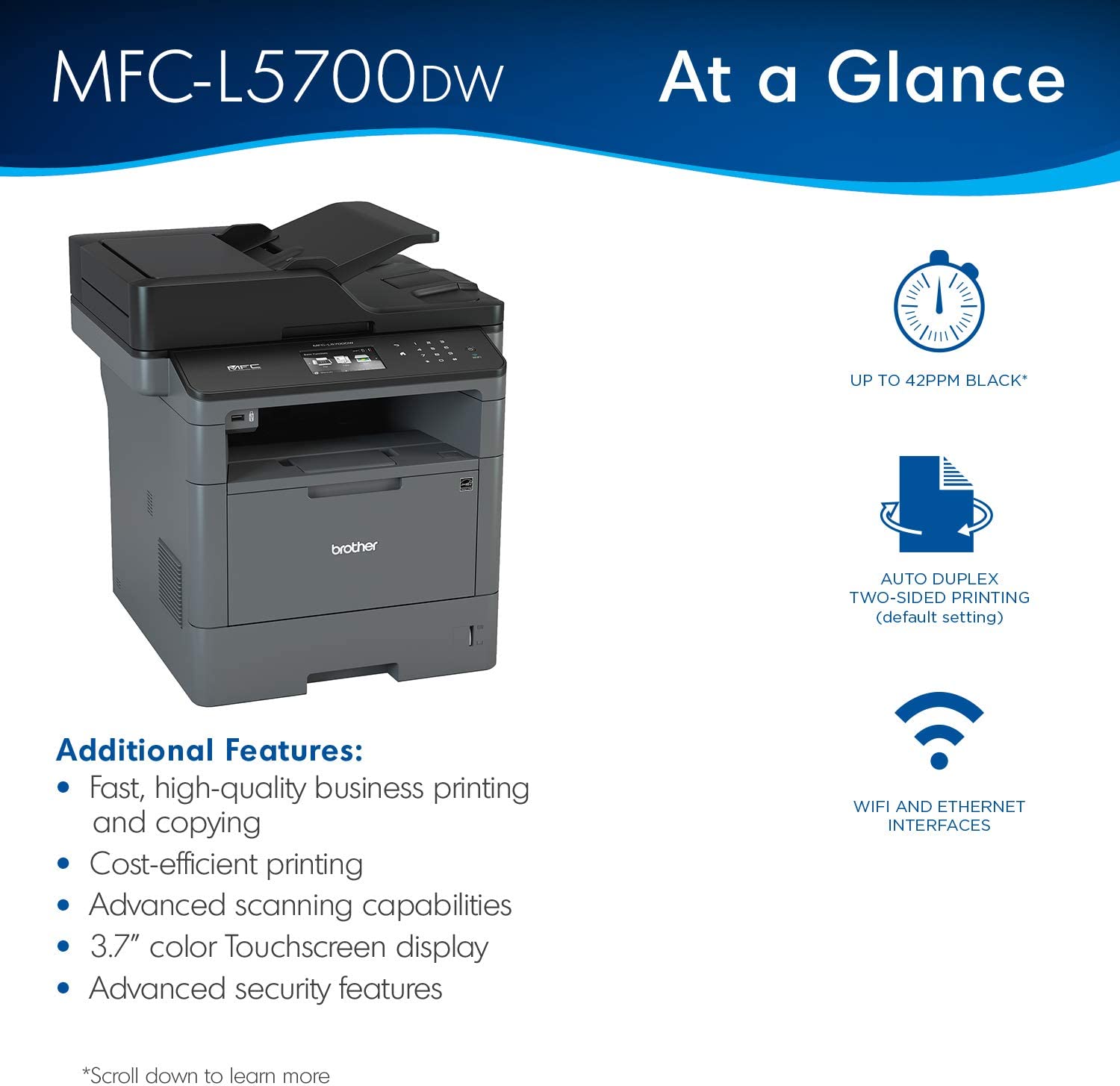 Brother Monochrome Laser MFP Printer, MFC-L5700DW, Flexible Network Connectivity, Mobile Printing and Scanning, Duplex Printing, Amazon Dash Replenishment Ready, Black