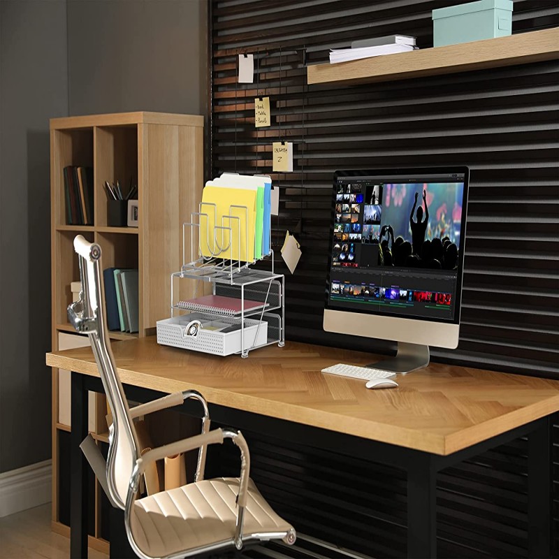 DecoBros Mesh Desk Organizer with Dual Trays, 5 Stacking Sorter Sections and Sliding Drawer, Black $156.0 |