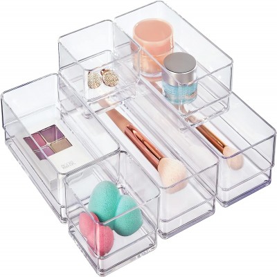 STORi SimpleSort 6-Piece Stackable Clear Drawer Organizer Set |Multi-Size Trays |Small Cosmetic Dresser Storage Bins & Desk Drawer Dividers |Made in the USA