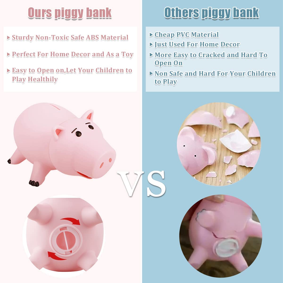 PHOCAS Hairphocas Cute Pink Piggy Bank Plastic Coin Bank Children Christmas Birthday Gift with Box