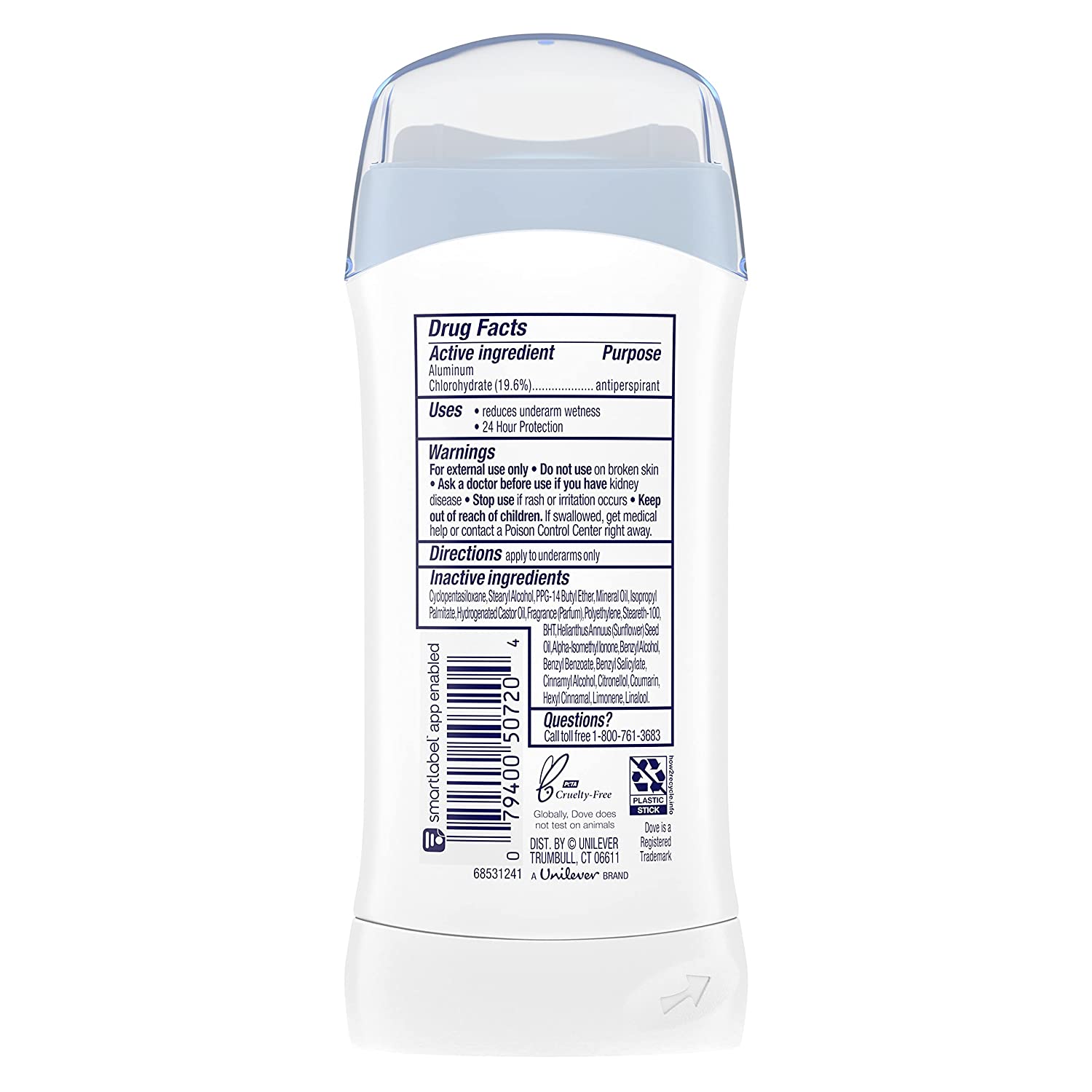 Dove Women's Invisible Solid Antiperspirant Deodorant Stick, Powdered, All Day Underarm Sweat and Deodorant Protection 2.6 oz