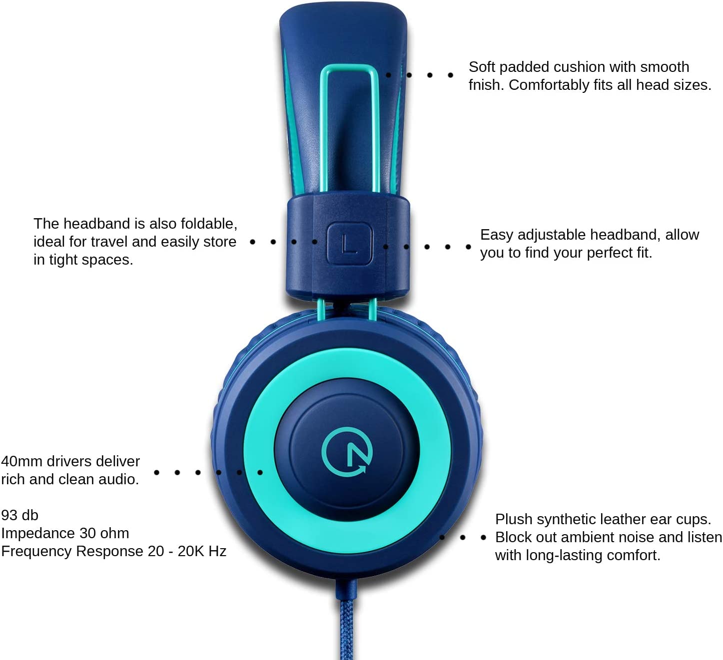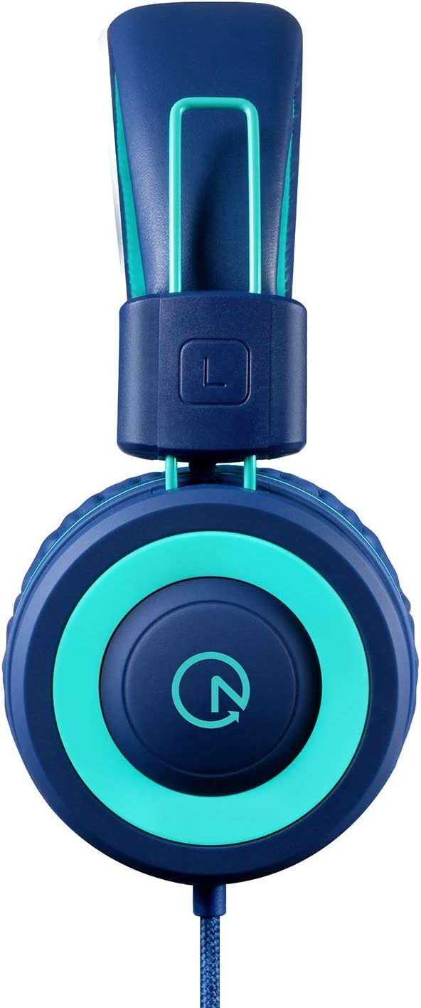 Kids Headphones - noot products K11 Foldable Stereo Tangle-Free 3.5mm Jack Wired Headphones for Kids / Teens / Boys / Girls / Smartphone / School / Kindle / Airplane Travel / Planes / Tablets PC (Navy Blue/ Cyan)